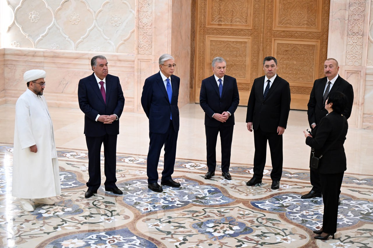 Президенты стран Центральной Азии и Азербайджана, прибывшие в нашу страну для участия в седьмой Консультативной встрече глав государств региона, вместе с Президентом Узбекистана посетили Центр исламской цивилизации в городе Ташкенте.